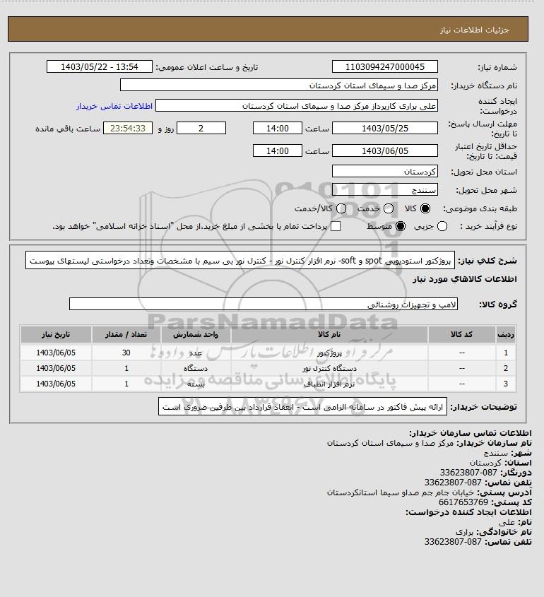 نام دستگاه خریدار:مرکز صدا و سیمای استان کردستان