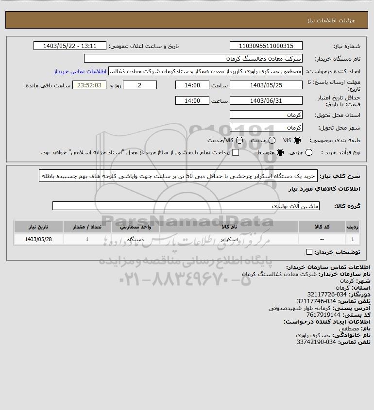 | 1 | -- | اسکرابر | دستگاه | 1 | 1403/05/28 |