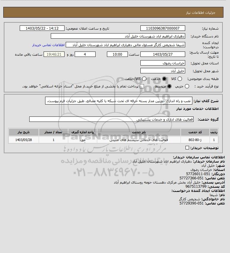 نام دستگاه خریدار:دهیاری ابراهیم اباد شهرستان خلیل آباد