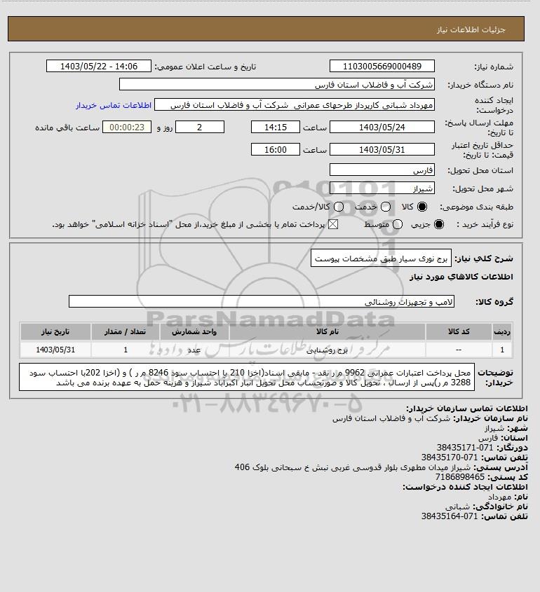استعلام برج نوری سیار طبق مشخصات پیوست, استعلام برج نوری سیار طبق مشخصات پیوست