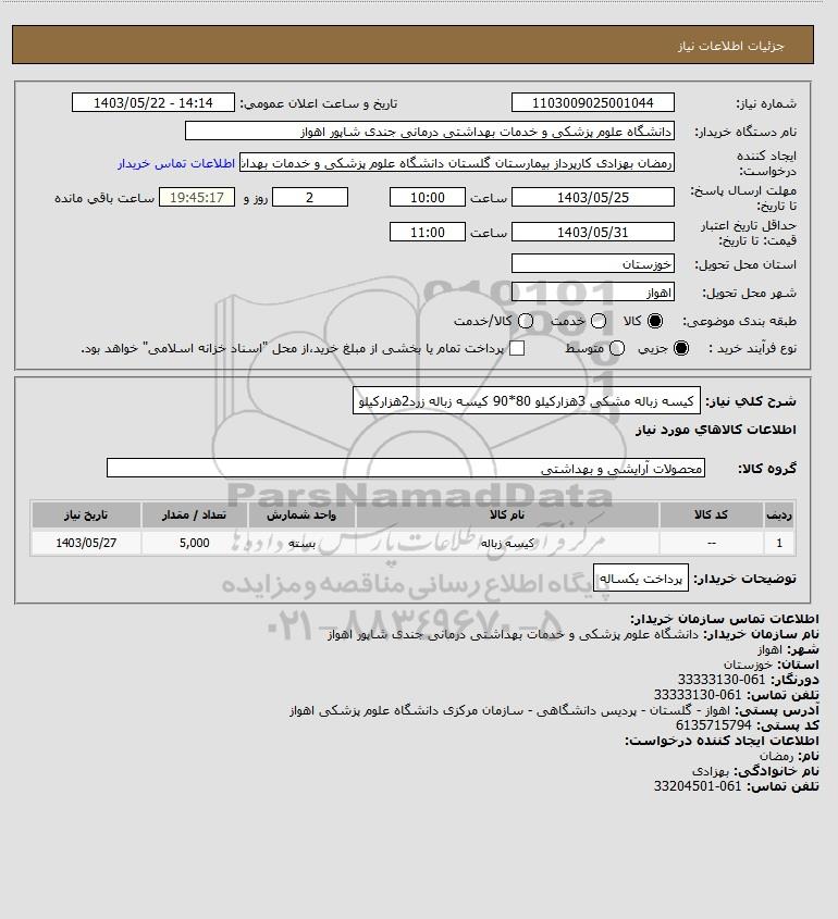 نام سازمان خریدار: دانشگاه علوم پزشکی و خدمات بهداشتی درمانی جندی شاپور اهواز