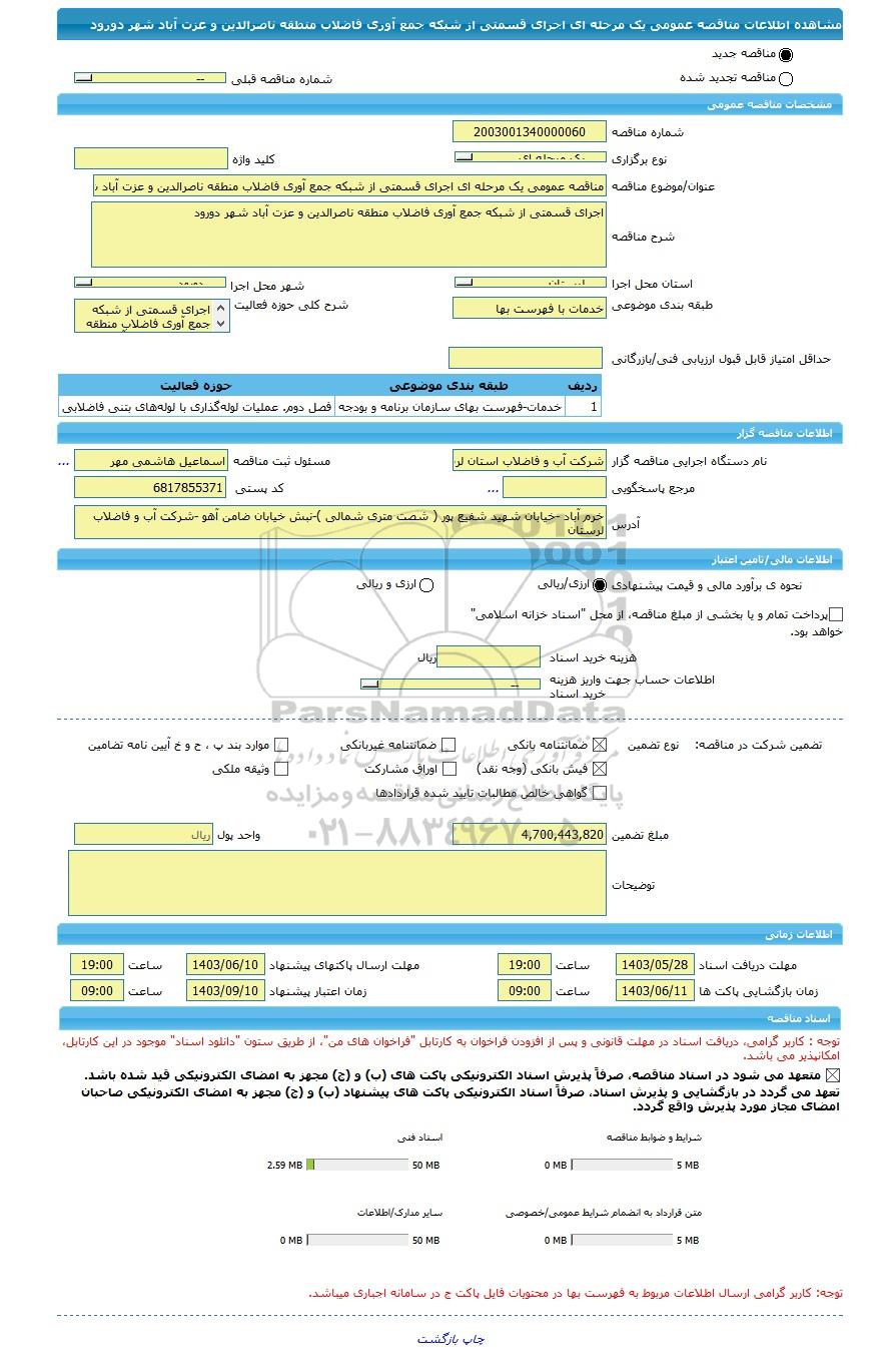 | مبلغ تضمین | 4,700,443,820 | واحد پول | ریال |