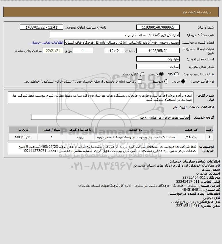 نام دستگاه خریدار:اداره کل فرودگاه های استان مازندران