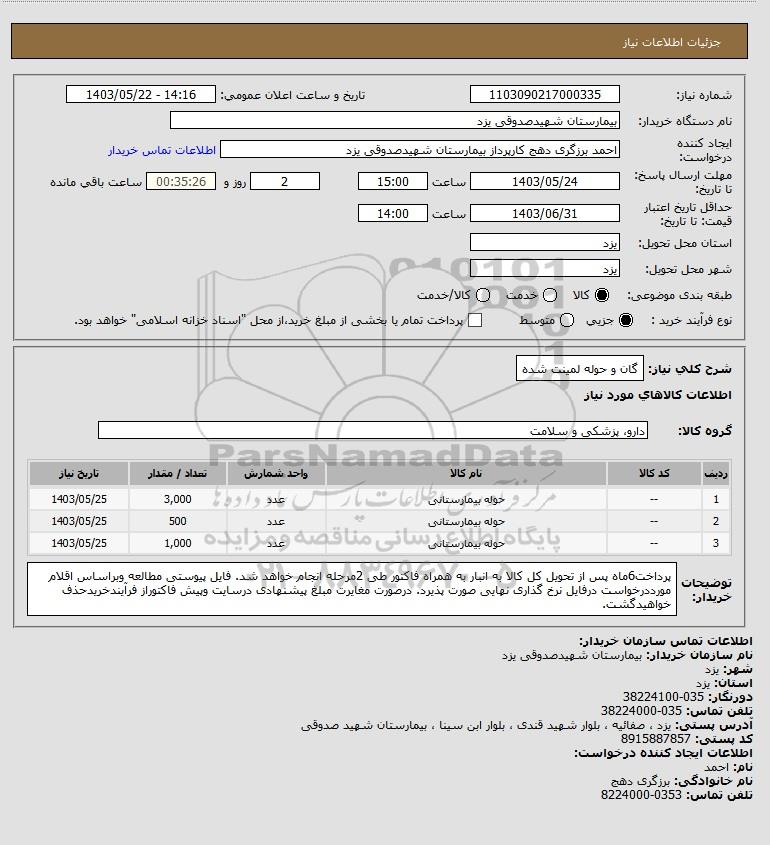 نام سازمان خریدار: بیمارستان شهیدصدوقی یزد