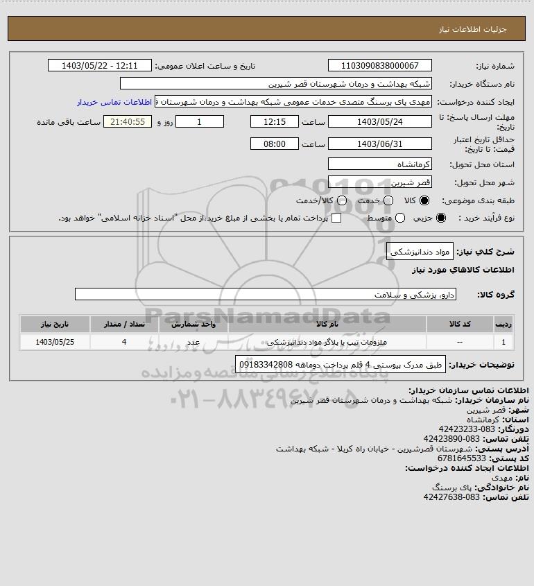 نام سازمان خریدار: شبکه بهداشت و درمان شهرستان قصر شیرین