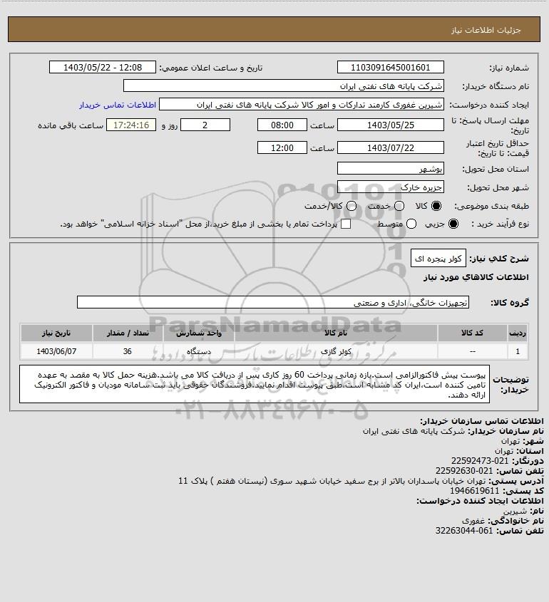 استعلام کولر پنجره ای, استعلام کولر پنجره ای