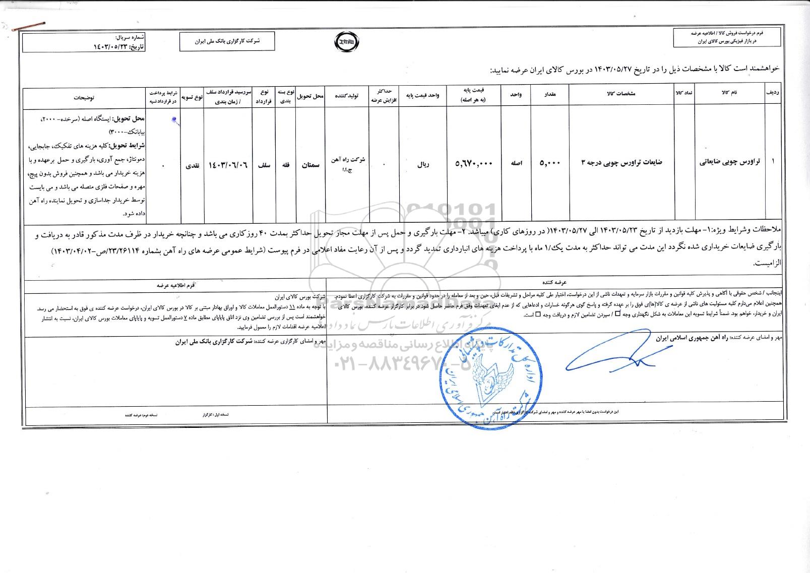 خواهشمند است کالا با مشخصات ذیل را در تاریخ 1403.5.27 در بورس کالای ایران عرضه نمایید: