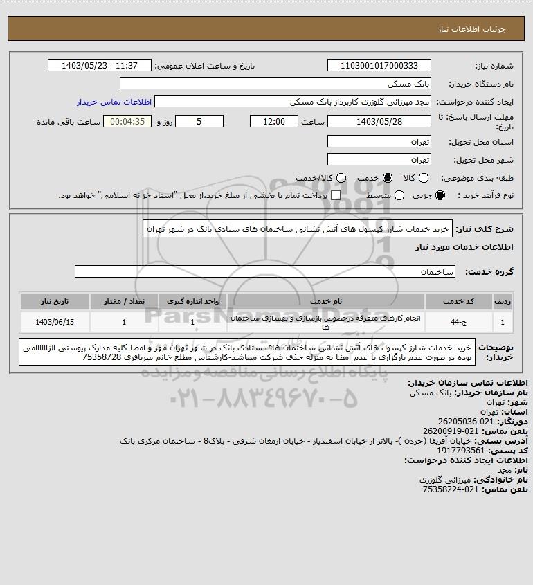 استعلام خرید خدمات شارژ کپسول های آتش نشانی ساختمان های ستادی بانک در شهر تهران, استعلام خرید خدمات شارژ کپسول های آتش نشانی ساختمان های ستادی بانک در شهر تهران