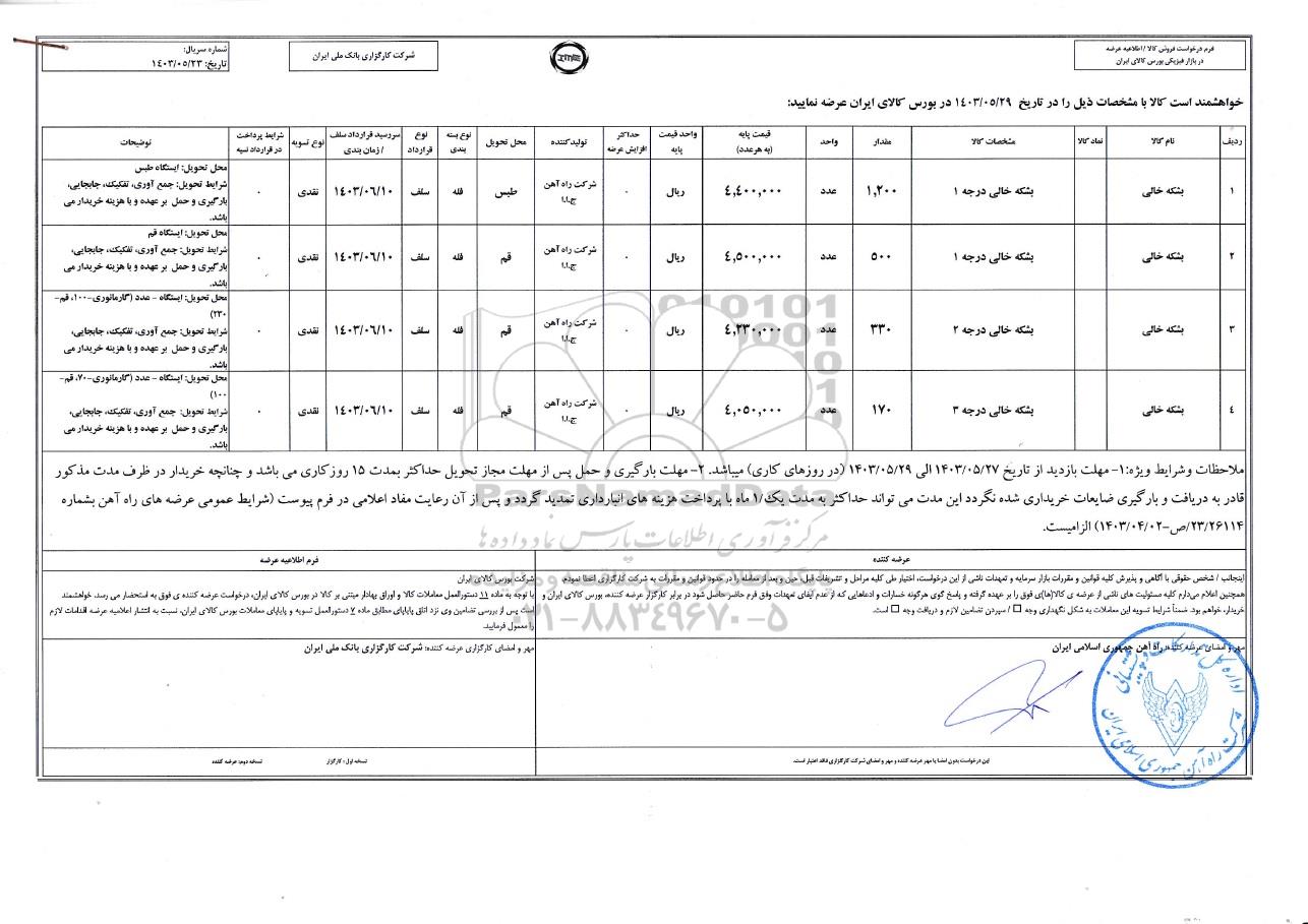 خواهشمند است کالا با مشخصات ذیل را در تاریخ 1403.5.29 در بورس کالای ایران عرضه نمایید: