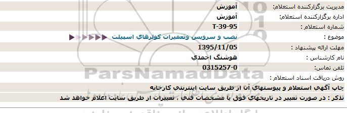 استعلام نصب و سرویس و تعمیرات کولرهای اسپیلت , استعلام ، استعلام نصب و سرویس و تعمیرات کولرهای اسپیلت
