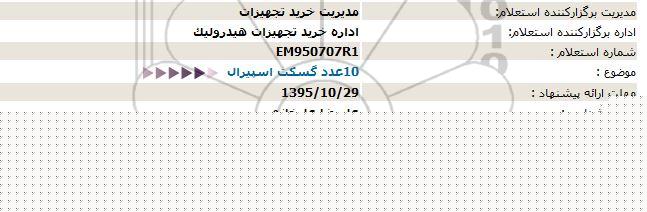 اداره برگزارکننده استعلام: اداره خرید تجهیزات هیدرولیک