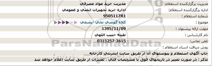 اداره برگزارکننده استعلام: اداره خرید تجهیزات ایمنی و عمومی
