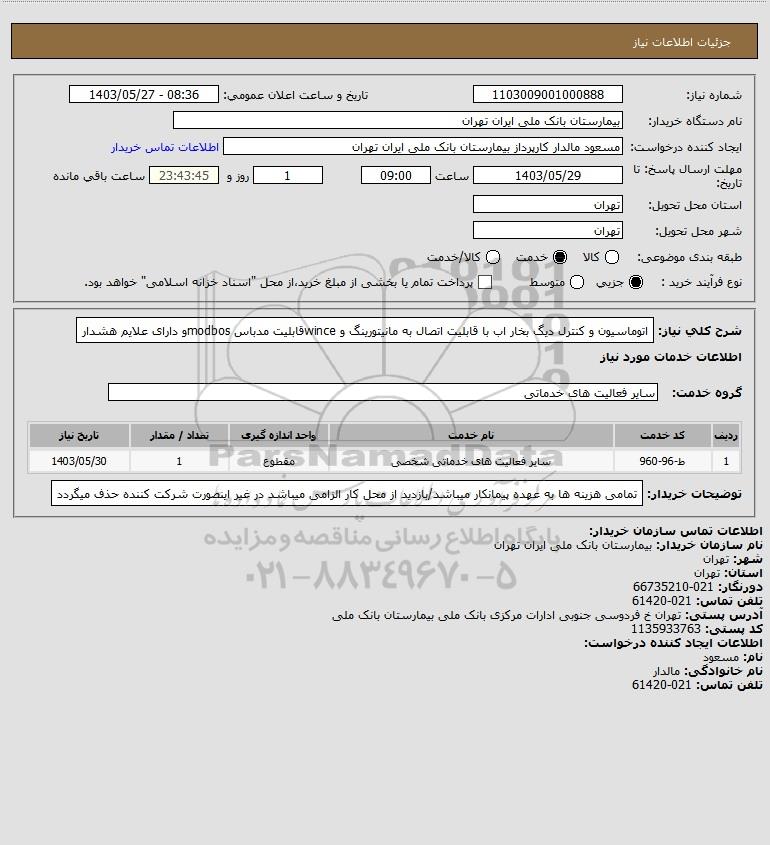 نام دستگاه خریدار:بیمارستان بانک ملی ایران تهران