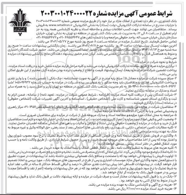 شرایط عمومی اگهی مزایده شماره 2003001024000022