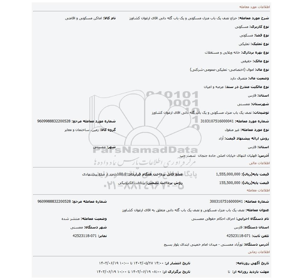 | شماره مورد معامله: 3103107516000041 | شماره مورد معامله مرجع: 9609988832200528 | |