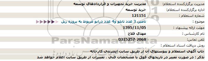 موضوع : تامین 3 عددد تابلو و 4 عدد درایو مربوط به پروژه ریل