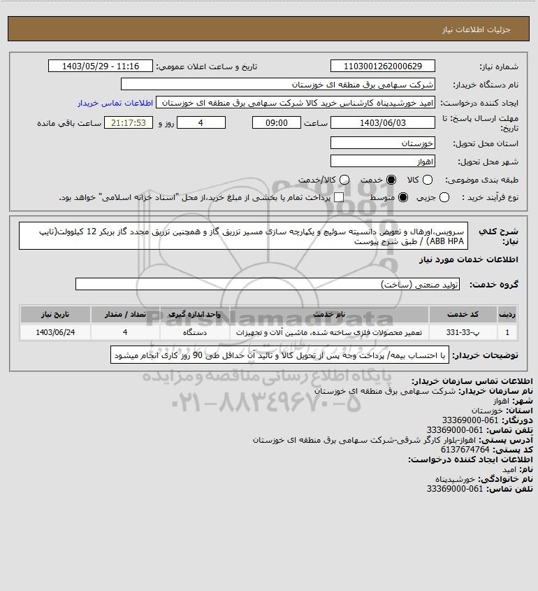 نام دستگاه خریدار:شرکت سهامی برق منطقه ای خوزستان