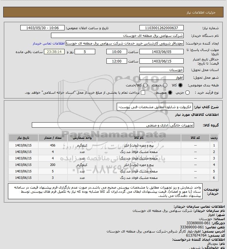 نام دستگاه خریدار:شرکت سهامی برق منطقه ای خوزستان
