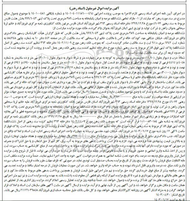مزایده فروش یک باب خانه به مساحت 389 مترمربع