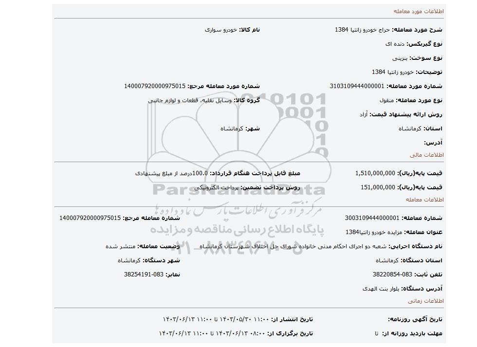 شماره مورد معامله: 3103109444000001شماره مورد معامله مرجع: 140007920000975015