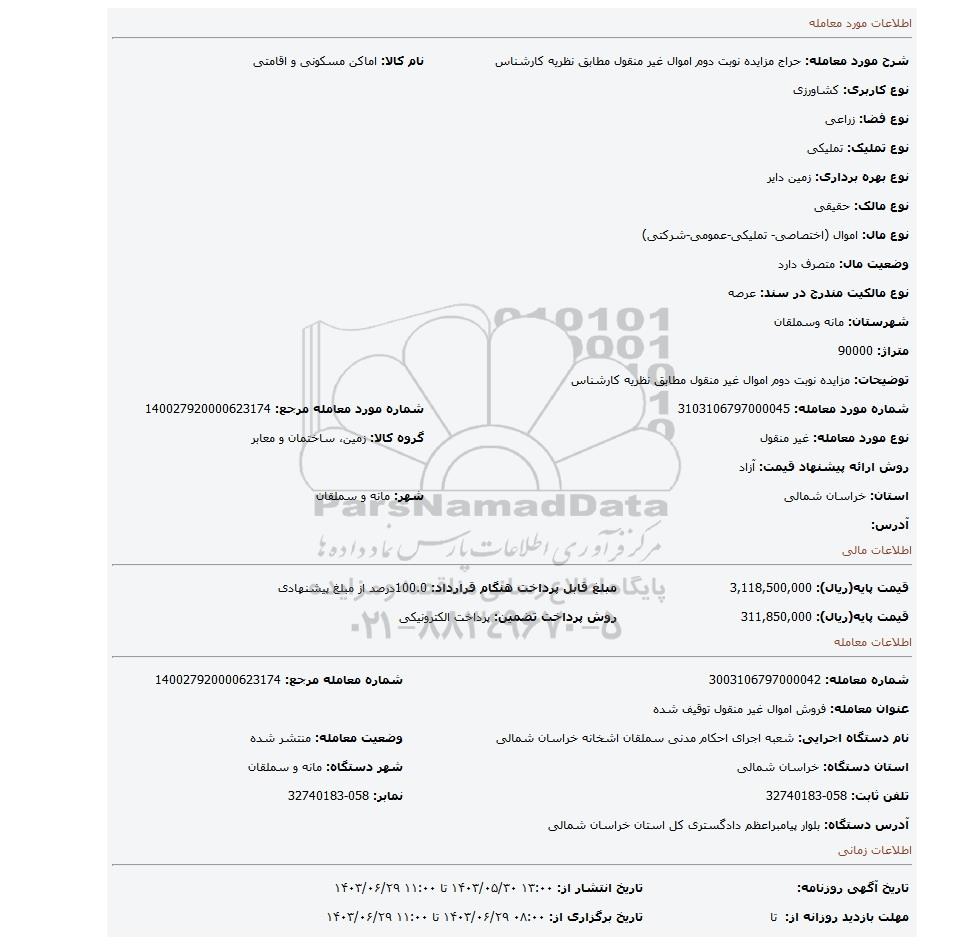 | شماره مورد معامله: 3103106797000045 | شماره مورد معامله مرجع: 140027920000623174 | |
