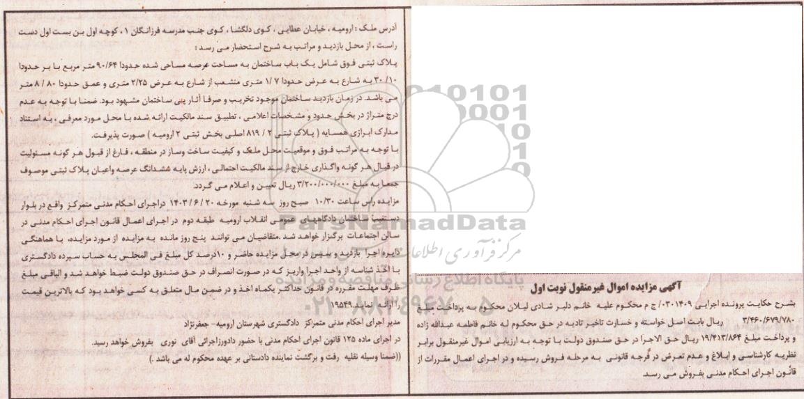 اگهی مزایده اموال غیرمنقول نوبت اول