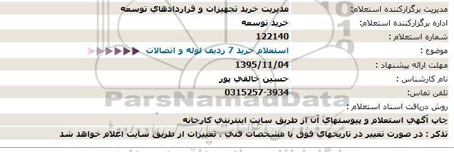 موضوع : استعلام خرید 7 ردیف لوله و اتصالات