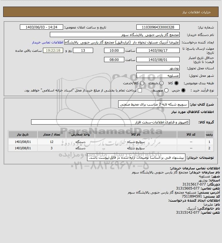 شرح کلی نیاز: سوییچ شبکه لایه 2 مناسب برای محیط صنعتی