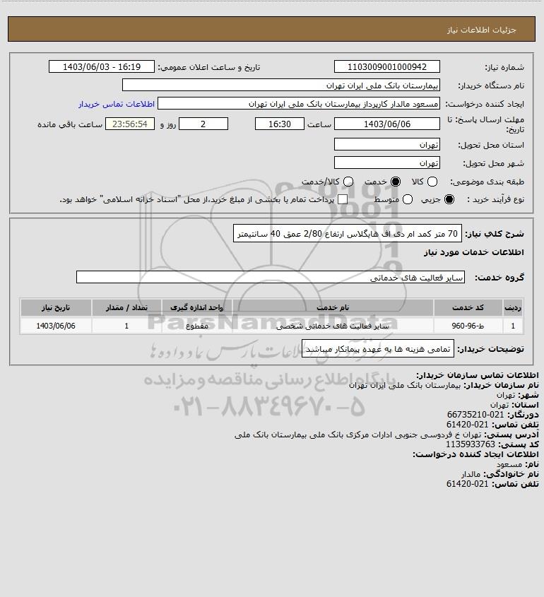 نام دستگاه خریدار:بیمارستان بانک ملی ایران تهران
