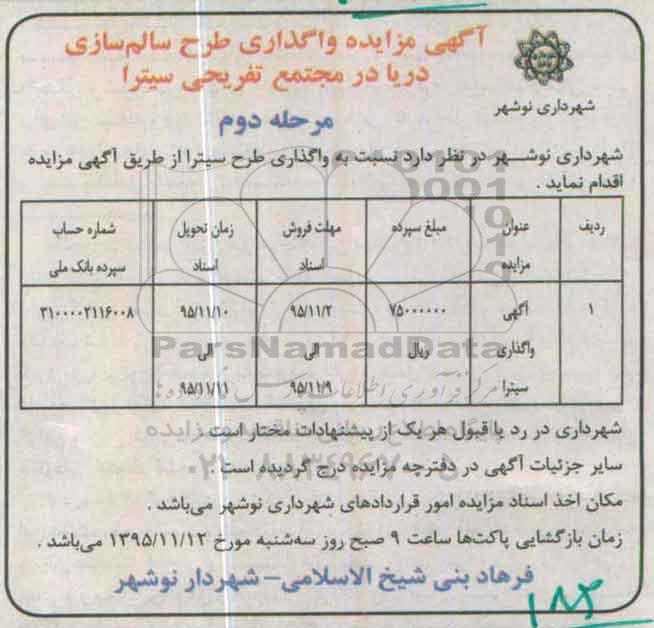 شهرداری نوشهر در نظر دارد واگذاری طرح توریستی سیترا از طریق مزایده کتبی اقدام نماید.