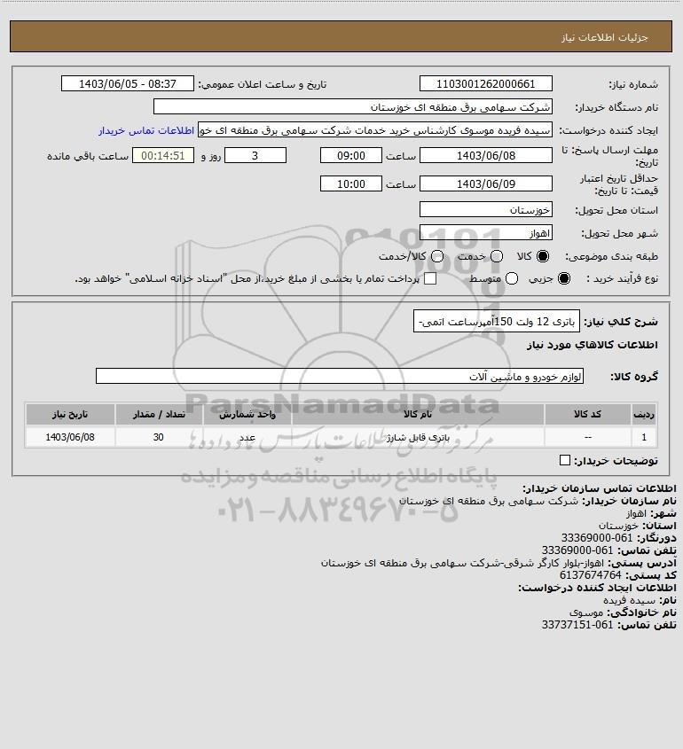 12 استعلام الکترونیکی انواع باطری 9728186 1404/07/29 new special not payed خراسان رضوی