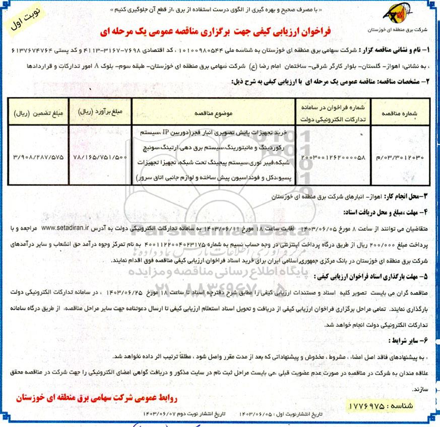 مناقصه خرید تجهیزات پایش تصویری انبار فجر (دوربین IP سیستم رکوردینگ و مانیتورینگ سیستم..., مناقصه خرید تجهیزات پایش تصویری انبار فجر (دوربین IP سیستم رکوردینگ و مانیتورینگ سیستم...