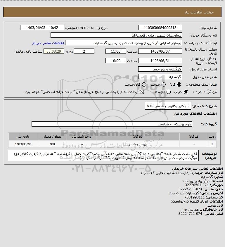 نام دستگاه خریدار:بیمارستان شهید رجایی گچساران