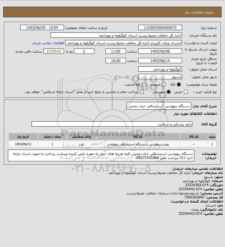 نام دستگاه خریدار:اداره کل حفاظت محیط زیست استان کهگیلویه و بویراحمد