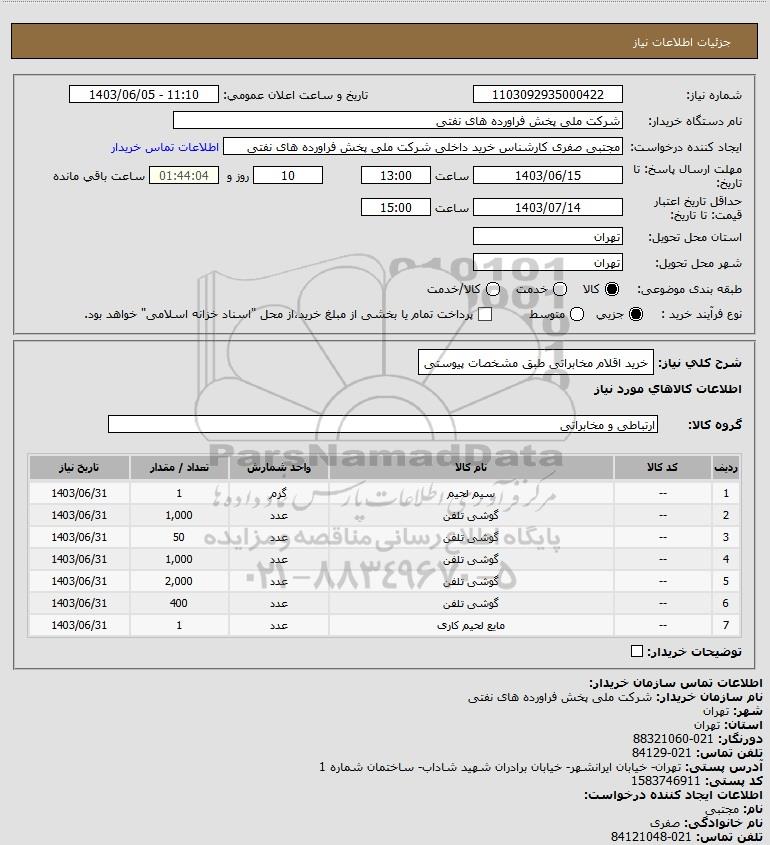 نام دستگاه خریدار:شرکت ملی پخش فراورده های نفتی