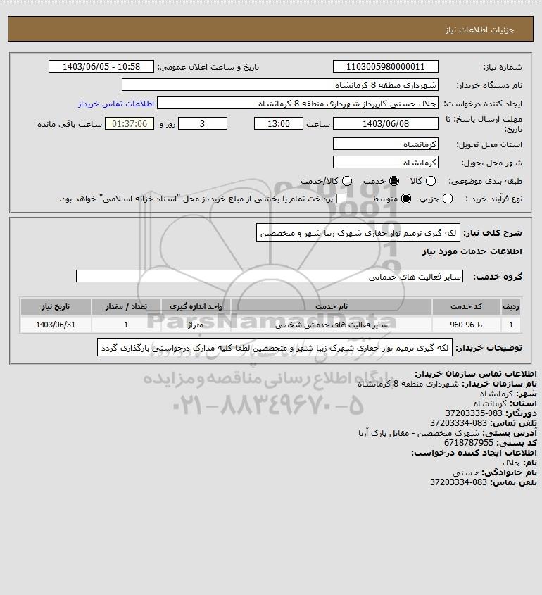 شرح کلی نیاز: لکه گیری ترمیم نوار حفاری شهرک زیبا شهر و متخصصین