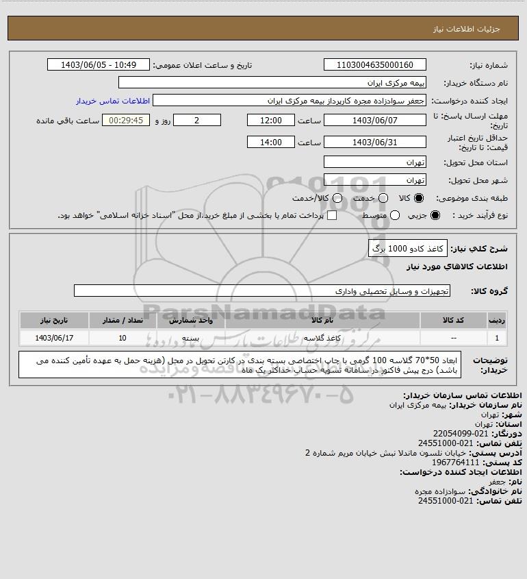 نام دستگاه خریدار:بیمه مرکزی ایران