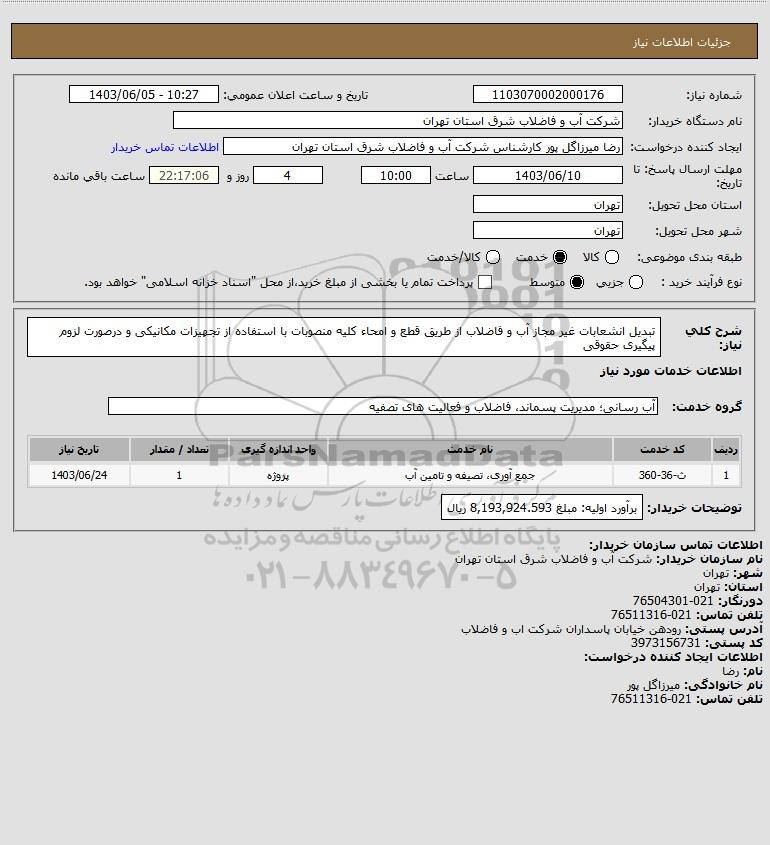 نام دستگاه خریدار:شرکت آب و فاضلاب شرق استان تهران