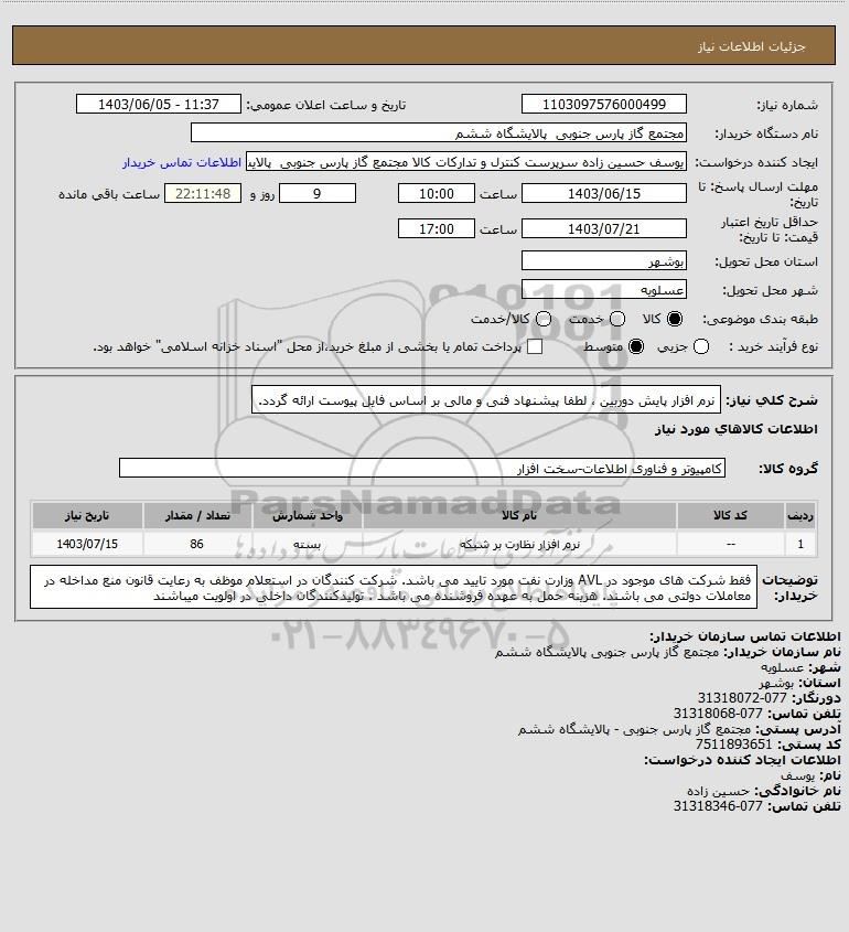 نام دستگاه خریدار:مجتمع گاز پارس جنوبی پالایشگاه ششم