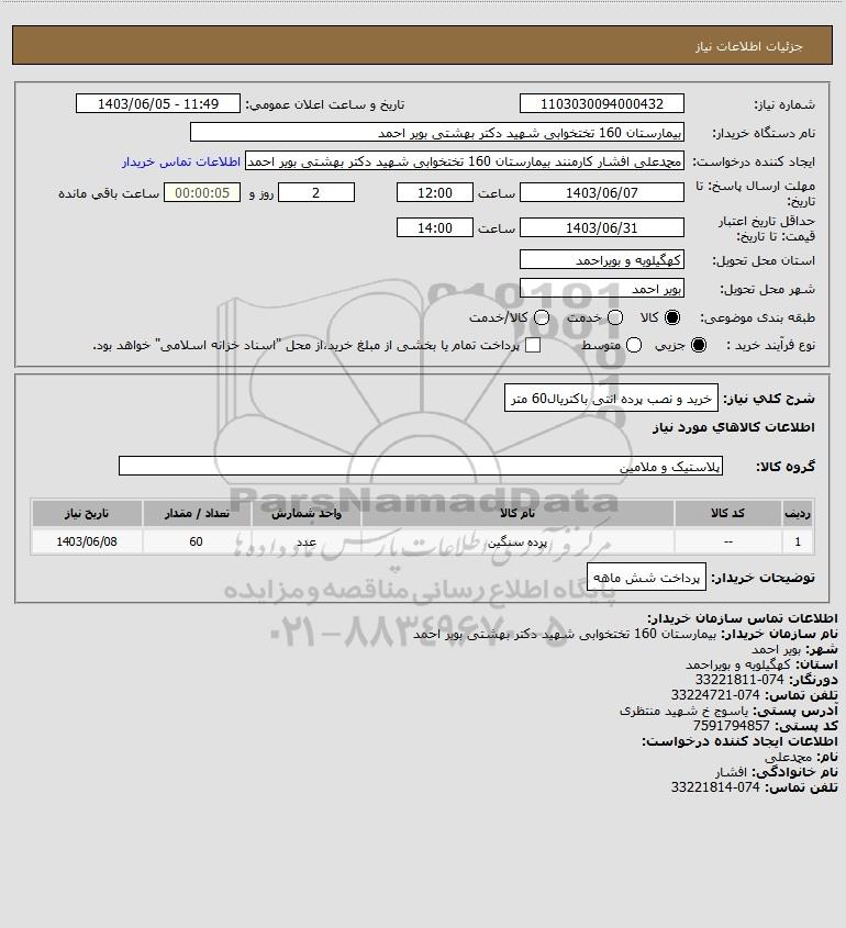 شرح کلی نیاز: خرید و نصب پرده انتی باکتریال60 متر