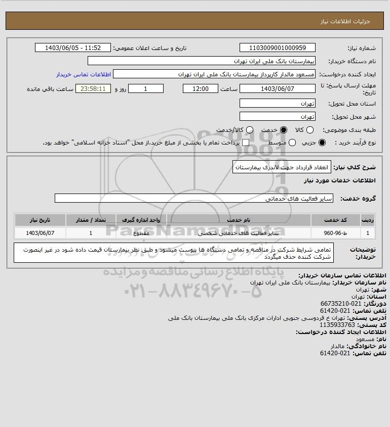 شرح کلی نیاز: انعقاد قرارداد جهت لاندری بیمارستان