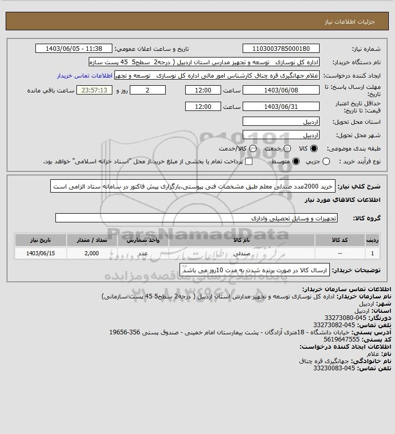 نام دستگاه خریدار:اداره کل نوسازی توسعه و تجهیز مدارس استان اردبیل ( درجه2 سطح5 45 پست سازمانی)