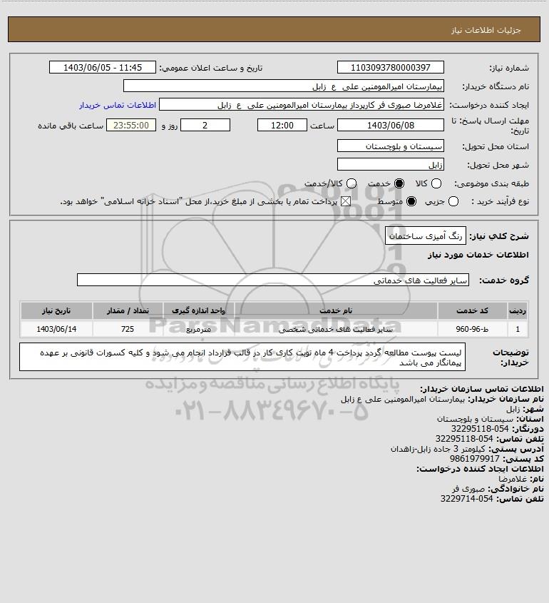 شرح کلی نیاز: رنگ آمیزی ساختمان