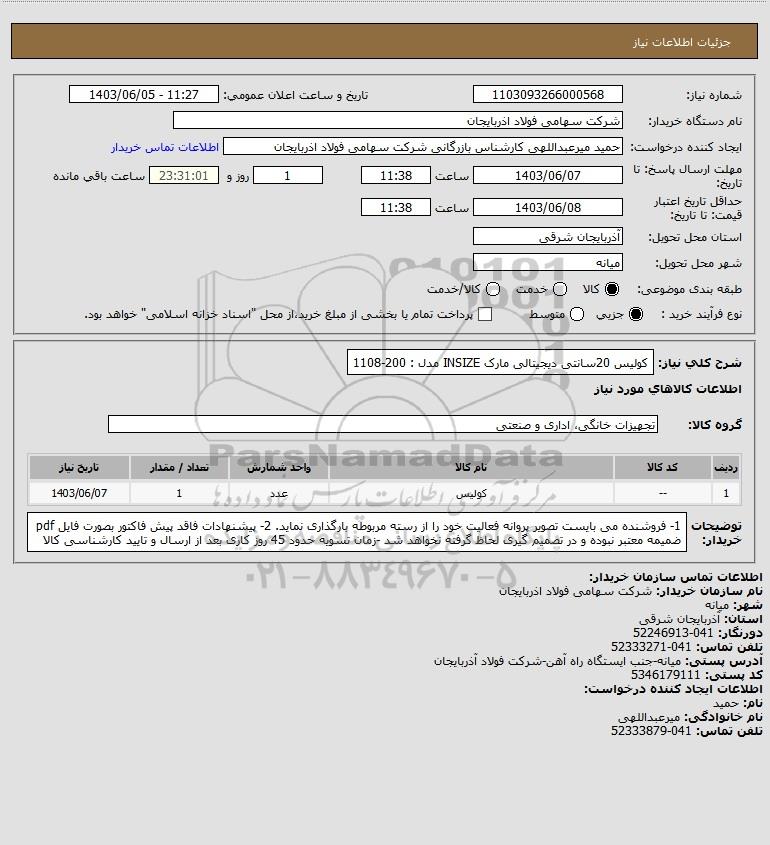نام دستگاه خریدار:شرکت سهامی فولاد اذربایجان