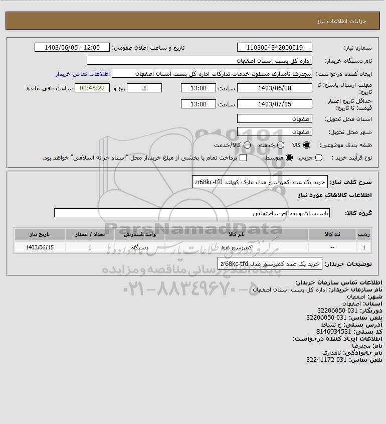 نام دستگاه خریدار:اداره کل پست استان اصفهان