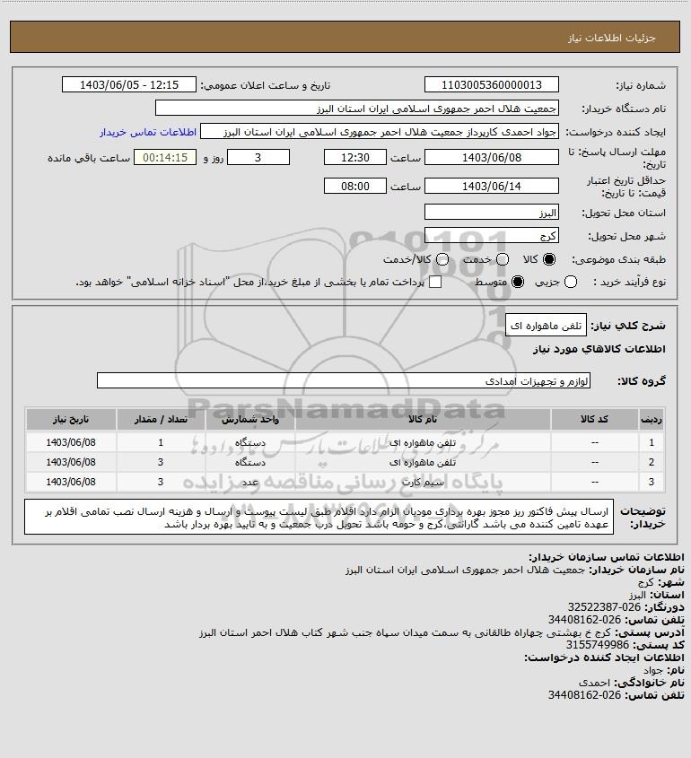 نام دستگاه خریدار:جمعیت هلال احمر جمهوری اسلامی ایران استان البرز