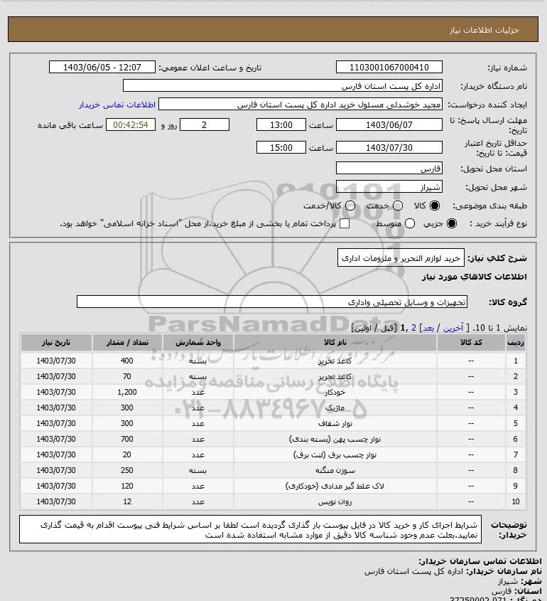 نام دستگاه خریدار:اداره کل پست استان فارس