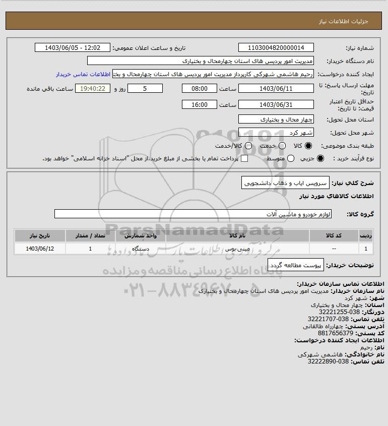 نام دستگاه خریدار:مدیریت امور پردیس های استان چهارمحال و بختیاری