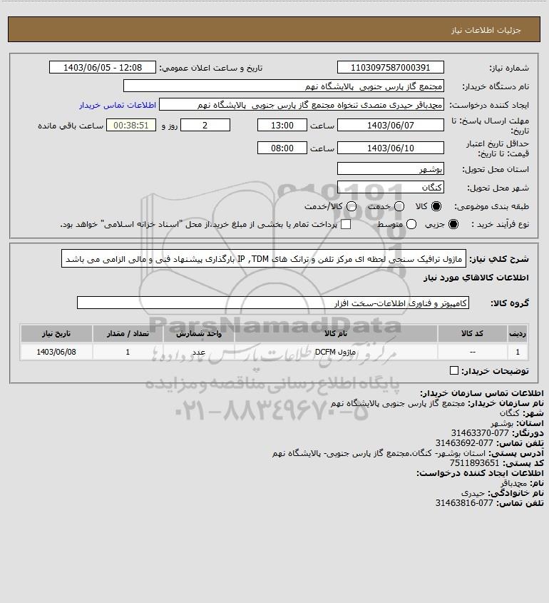 | 1 | -- | ماژول DCFM | عدد | 1 | 1403/06/08 |