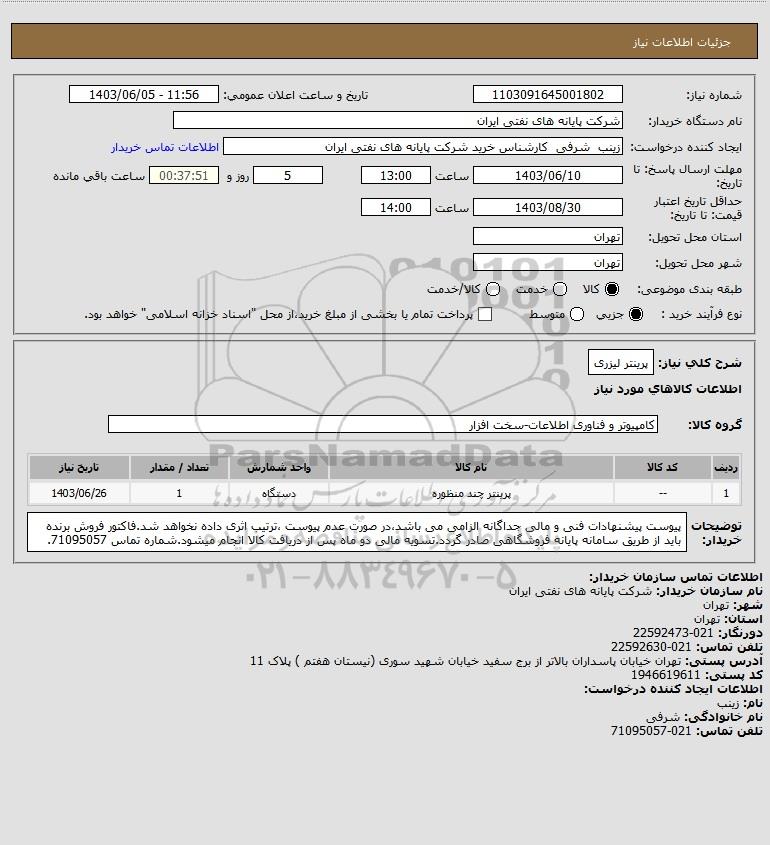 شرح کلی نیاز: پرینتر لیزری